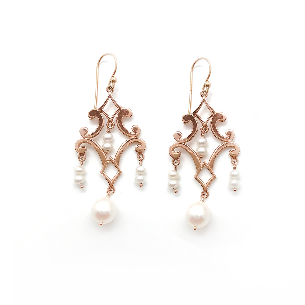 Orecchini Chandelier In Argento Rosa con Perle